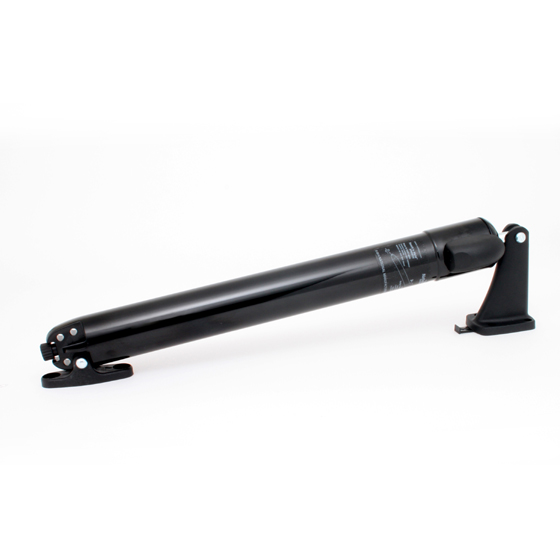 A pneumatic storm door closer that has a smooth closing motion similar to a hydraulic closer without the mess and the cost. Great for storm and screen doors. Patented push-button technology means a simple tap with a foot, elbow, or finger will hold the door in any open position you want. Simply nudge the door farther open to release and close. No hands required!