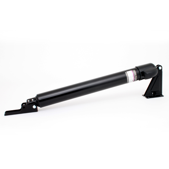 A pneumatic storm door closer that has a smooth closing motion similar to a hydraulic closer without the mess and the cost. Great for storm and screen doors. Patented push-button technology means a simple tap with a foot, elbow, or finger will hold the door in any open position you want. Simply nudge the door farther open to release and close. No hands required!